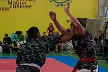 Les combats se présentent donc sous forme de deux équipes. La victoire ou la défaite ne dépend pas d'un seul combattant mais des actions de toute l'équipe. Les mouvements sont étudiés à mains nues mais se réalisent de manière totalement identiques avec une arme (un couteau, bâton, fouet et d'autres types d'armes blanches).[réf. nécessaire]