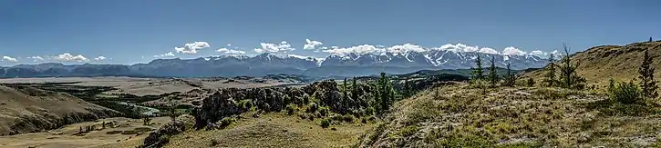 La steppe de la Tchouïa est un plateau d'une longueur de 70 kilomètres et d'une largeur de 10 à 40 kilomètres à une altitude comprise entre 1 750 mètres et 1 850 mètres. Elle se présente sous la forme d'une étendue semi-désertique et peu accidentée. Elle est formée de dépôts sédimentaires cénozoïques de type glaciaire et elle est entourée de toute part de massifs montagneux : les monts Kouraï au nord, le massif de la Tchouïa du Nord et le massif de la Tchouïa du Sud à l'ouest, les monts Saïliouguem au sud et les monts Tchikhatchov à l'est.