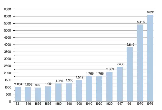 - Sources : INS, Rem. : 1831 jusqu'en 1970 = recensements, 1976 = nombre d'habitants au 31 décembre[2].