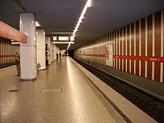 Elle dispose d'un quai central encadré par les deux voies de la ligne U1. Ces installations sont également desservies par les rames de renfort de la ligne U7 du métro de Munich[3],[4].
