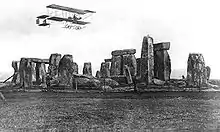 Le premier survol de Stonehenge, par un aéroplane britannique "Bristol", en 1910, est resté l'un des plus fameux.