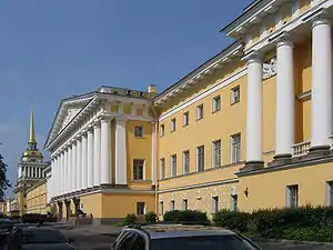 Le classicisme tardif ou classicisme Alexandrovski est une architecture d'avant-guerre qui apparaît approximativement dans les années 1800 à 1812, et qui est précurseur du style Empire russe et s'identifie même souvent avec lui[4]. Ces appellations d'Alexandrovski (période 1800—1830) et Nikolaevski (après 1830) du classicisme ont été introduites par Igor Grabar qui n'utilisait pas le terme empire[3].
