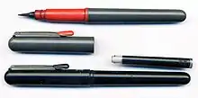 Fude pen (筆ペン), (stylo-pinceau en japonais) de Pentel à cartouche d'encre et pointe synthétique.