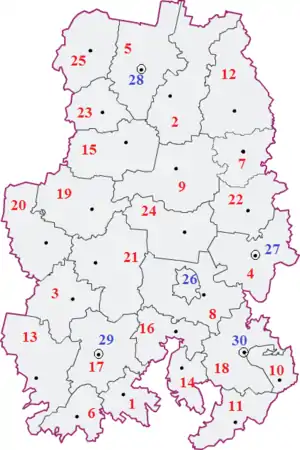 | № | Drapeau | Raïon | Centre administratif | Superficie km² |