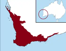 Le Sud-Ouest de l'Australie est un foyer de biodiversité qui comprend les écorégions de Forêts et maquis du Sud-Ouest australien. La région a un climat méditerranéen aux hivers humides et aux étés secs, c'est l'une des cinq régions de ce type dans le monde. Elle couvre une superficie de 356 717 km2, comprenant une vaste plaine côtière de 20 à 120 kilomètres de large, se poursuivant par une transition douce par des collines ondulantes faites de granite érodé, de gneiss et de latérite. Des déserts et broussailles xérophytes s'étendent vers le nord et le centre de l'Australie, séparant l'Australie-Occidentale des autres régions à climat méditerranéen et humide du continent.