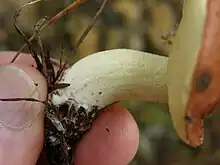 - Le Bolet à base rose (Suillus collinitus) a un chapeau fibrilleux plus marron et un mycélium rose.