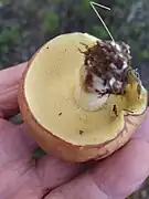 - Suillus granulatus var. flavovirens, chapeau d'un magnifique jaune orangé[6].