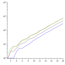 - Cette propriété reste vraie dans le cas général[9] où le premier terme de la suite est choisi différent de 1 (et de 22, puisque dans ce cas la suite est constante), avec une constante C qui dépend de ce choix, mais avec toujours la même constante λ.