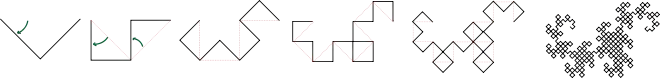 Ainsi et . Ces formules se traduisent en un autre procédé de construction. On commence par une suite alternée de 0 et de 1, séparée par des « trous ». Dans un deuxième temps, ces trous sont remplis, à leur tour, par une suite alternée de 0 et de 1 lacunaire, etc. La suite résultante est la suite de pliage :