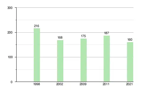 En 2021, le village d'Uścikowo comptait 160 habitants, en diminution de −25,93 % par rapport à 1998[6]. En 2021, 56,9 % des habitants du village d'Uścikowo étaient en âge de travailler (entre 18 et 64 ans pour les hommes et 18 et 59 ans pour les femmes). 23,1 % des habitants avaient moins de 18 ans et 20 % avaient l'âge légal de la retraite. Les personnes en âge de travailler représentaient 59,5 % de la population de la voïvodie de Couïavie-Poméranie et 59,5 % de la population de Pologne. Ainsi, le taux de dépendance démographique du village d'Uścikowo est supérieur à celui de la voïvodie de Couïavie-Poméranie et supérieur à celui de la Pologne[7].
