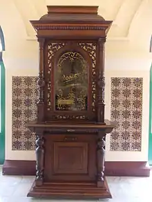 À la droite de la porte principale de la mosquée Syahabuddin se trouve le cimetière de la famille royale, avec sa décoration d'art musulman.