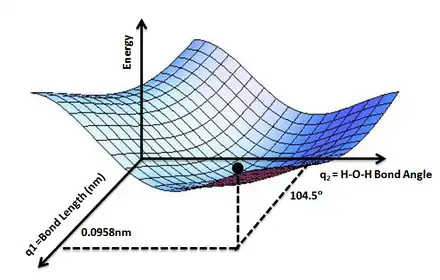 Une fois que la surface d'énergie potentielle a été obtenue, un ensemble de points intéressants doit être déterminé. Le plus important est peut-être le minimum global de l'énergie. Ce minimum global, qui peut être déterminé numériquement, correspond à la configuration nucléaire la plus stable. D'autres points intéressants sont les coordonnées de réaction (le chemin le long duquel sur la surface d'énergie potentielle les atomes « voyagent » durant la réaction chimique), les points selles ou les maxima locaux le long de ces coordonnées (qui correspondent aux états de transition), ainsi que les minima locaux le long de ce chemin (qui correspondent aux intermédiaires de réaction).