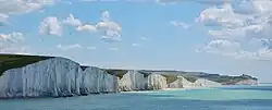 Physiquement, le comté est divisé en deux parties ; les collines de craie des Downs du Sud dans le sud-ouest, qui s'achèvent sur les falaises des Seven Sisters, d'une part, et la plaine du Weald dominant le reste du comté.