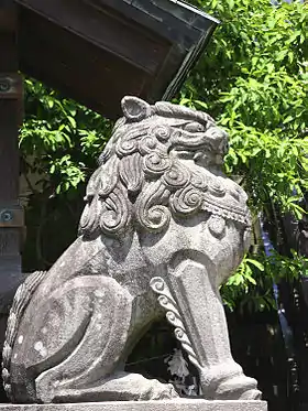Une autre caractéristique unique du sanctuaire Suwa sont les lions gardiens des temples taillés dans la pierre. La tradition veut que si on désire prendre de bonnes résolutions, comme arrêter de fumer par exemple, il faut attacher un morceau de papier ou une ficelle autour de leurs pattes avant et prier pour leur aide.