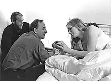 Sven Nykvist avec Bergman et Liv Ullmann lors du tournage de Scener ur ett äktenskap en 1972.