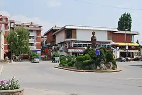![]() ![]() ![]() De haut en bas et de gauche à droite : la statue de Saint-Nicolas sur la place d'Ilinden, le Musée national et l'église Saint-Nicolas. |