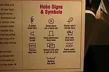 Les hobos communiquaient entre eux au moyen d'un système de « signes hobo » (ou « hiéroglyphes hobo »). Ils seraient gravés à la craie dans des endroits pertinents ou importants pour alerter clandestinement les futurs hobos au sujet d'informations locales importantes[5].