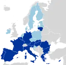 L'euro est devenu un symbole depuis qu'il a remplacé douze monnaies nationales en 2002 et est devenu de jure la monnaie unique de l'union économique et monétaire[11]. Il est maintenant utilisé dans 19 États membres de l'UE, ainsi que dans d'autres pays européens et il est devenu (avec son symbole monétaire : €) l'un des symboles les plus tangibles de l'unité européenne pour ses citoyens.
