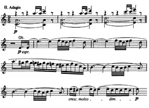 - Adagio (en la mineur)[5], avec « son solo orientalisant de hautbois[7] » ;