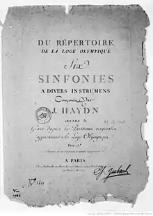 Les six symphonies dites « parisiennes » de Joseph Haydn sont dues à Claude-François-Marie Rigoley, comte d'Ogny, l'un des promoteurs du Concert de la Loge olympique à Paris. Fin 1784, début 1785, il prend en effet contact avec Haydn par l'intermédiaire du compositeur et chef d'orchestre de la société de concerts, le chevalier Joseph Bologne de Saint-George, et passe commande d'une série de symphonies, au prix de 25 louis d'or par symphonie, plus cinq louis pour les droits de publication[1].
