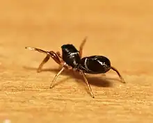 En Europe, deux autres espèces de Salticidae miment les fourmis et sont morphologiquement proches : Myrmarachne formicaria et Leptorchestes berolinensis qui sont toutes deux plus grandes, mesurant de 5,0 à 6,5 mm de long[31].