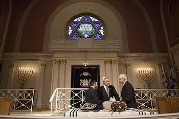 C'était la première visite du président Bush à une synagogue depuis son élection.