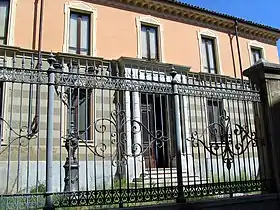 Le bâtiment se présente de la rue Ottolenghi avec une façade néoclassique sur deux niveaux, avec au rez-de-chaussée, la porte d'entrée centrée et deux fenêtres de chaque côté. La porte d'entrée en bois se trouve en haut d'un perron de cinq marches. Elle est encadrée des deux côtés par deux colonnes à chapiteau ionique, supportant un entablement sur lequel est inscrit en lettres hébraïques la phrase : « L'Éternel est près de tous ceux qui l'invoquent » (Psaume 145-18[2]).