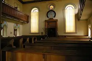 La synagogue d'Ingwiller[1] (Bas-Rhin) qui date de 1822 pour sa partie la plus ancienne et qui a été agrandie en 1891 est construite sur les soubassements d'un château des comtes de Lichtenberg qu'on devine sur la vue générale à droite[2]. Elle n'accueille plus de services religieux réguliers. Le bulbe de cuivre de style oriental date de 1913.