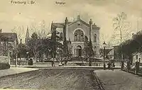 La synagogue de Fribourg-en-Brisgau, inaugurée en 1870, a été détruite en 1938 lors de la nuit de Cristal comme la plupart des autres lieux de culte juif en Allemagne.