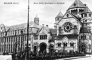 La synagogue de Mülheim, inaugurée en 1907, a été détruite en 1938 lors de la nuit de Cristal comme la plupart des autres lieux de culte juif en Allemagne.