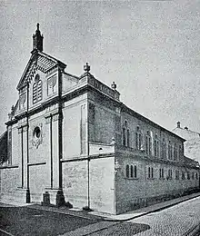 De structure plutôt néoclassique, la nouvelle synagogue est remarquable pour son décor riche en allusions au culte israélite (tables de la Loi sur le fronton du chevet et dans les acrotères, menorahs en bas-relief).