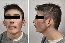 Les signes cliniques associés peuvent être une hypotonie, une microcéphalie[9], une dysmorphie[9], des cheveux épars[9], des difficultés d'alimentation[9], des infections respiratoires récurrentes[9], un petit poids de naissance, une petite taille[9], un retard de croissance[9], une hyperlaxité ligamentaire, une hypertrichose[2]. Les sujets atteints présentent une dysmorphie pouvant associer un faciès grossier avec une épaisseur de peau augmentée[2], un grand nez et une grande bouche, des cils longs[3], des sourcils épais[3] (voire un synophris) et de petites fentes palpébrales.