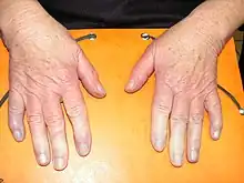 L'atteinte du pouce est évocatrice d'une connectivite[7], de même que la sévérité des crises, pouvant aller jusqu'à la formation d'ulcères, ou leur caractère rapproché[3].