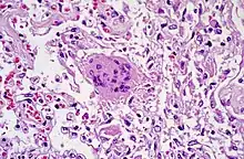 Pathologie du tissu pulmonaire due au SRAS-CoV