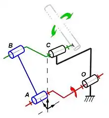 C'est le cas où l'extrémité de bielle est liée à une autre manivelle, une pédale ou un bras articulé. L'extrémité de bielle décrit un segment de courbe circulaire. Exemples :