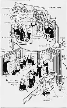 Dans un navire de guerre britannique de la Seconde Guerre mondiale, le système de contrôle de tir, posté en haut du bâtiment, était relié aux différentes tourelles, cependant que l'analyseur différentiel était protégé au centre du navire. Depuis la tour de commande, les opérateurs observaient la cible aux jumelles. Un observateur mesurait la hausse, l'autre le gisement.