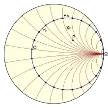 Un système analogue utilise un horocycle comme axe des ordonnées[2] : utilisant l'horocycle passant par l'origine et centré sur le point à l'infini de l'axe des abscisses (dans le disque de Poincaré), on associe à chaque point P le point Ph situé sur l'horocycle et sur la droite .