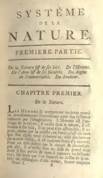 - Système de la nature ou Des loix du monde physique et du monde moral, première partie.