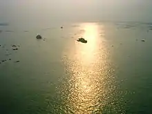 Près de Bhola, juste avant de se jeter dans la Golfe du Bengale, la rivière se divise en deux cours d'eau principaux dans le delta du Gange et sépare une île des deux côtés du continent. Le ruisseau occidental s'appelle Ilsha et celui de l'est s'appelle Bamni .