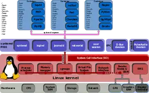 Systemd est basé sur quelques dizaines de binaires gérant l'ensemble du système de boot, et quittant ainsi la philosophie UNIX du KISS[3].