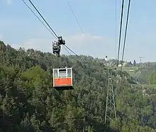 ![]() Cabine du téléphérique au milieu de la ligne. |