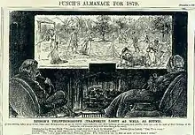 Avant la description du téléphonoscope par Robida en 1883, la rumeur attribuait cette invention, sous le même nom, à Thomas Edison. Le caricaturiste George du Maurier avait ainsi publié un dessin intitulé Edison's telephonoscope dans l'almanach 1879 du magazine Punch. On y voyait un couple, dans un salon à Londres, en visioconférence avec leur fille jouant au tennis à Ceylan[5].