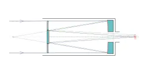 Le télescope utilise à la fois un miroir et un correcteur, et est capable d'observer jusqu’à 16 degrés, mais a été ajusté après sa mise en service en 1962[2].