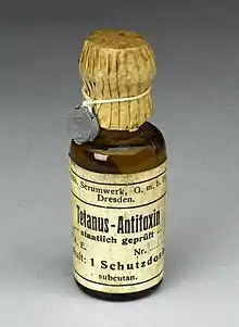 Sur le plan médical, les progrès de l'immunologie permettent de remplacer les sérums antitétaniques d'avant-guerre par leurs principes actifs purifiés, les immunoglobulines antitétaniques d'origine équine. Elles ont une plus longue durée d'action que les premiers sérums, mais avec un risque allergique persistant. Dans les années 1960, les premières immunoglobulines d'origine humaine sont disponibles, le risque allergique est réduit au minimum, mais elles coûtent beaucoup plus cher. Elles s'imposeront finalement pour être la norme dans les pays développés. Dans les années 2000, la plupart des pays en développement y accèdent progressivement, en fonction de leurs moyens et de la baisse des coûts[11].