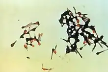 Clostridium tetani (Bacillus tetani, ou bacille de Nicolaïer) est un bacille gram positif sporulant anaérobie strict. C'est une bactérie tellurique ubiquitaire, plus fréquente sous les tropiques que dans les pays tempérés ou froids[22]. Elle peut se présenter sous deux formes : la forme végétative active et la forme sporulée inactive (Plectridium tetani). Les deux formes se transforment l'une en l'autre, essentiellement selon la teneur en oxygène, mais aussi selon le pH, la température, et les conditions chimiques du milieu. La forme active apparaît en anaérobie, c'est-à-dire en absence ou pauvreté d'oxygène (moins de 5 %).
