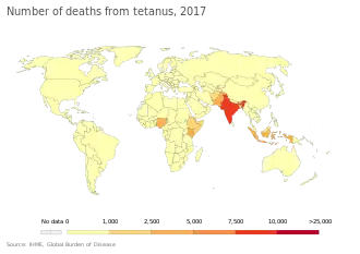Dans les pays industriels, si cette maladie est en voie de disparition, elle persiste encore par insuffisance de vaccination. Ailleurs, elle touche surtout les femmes qui viennent d'accoucher et les nouveau-nés des régions les plus pauvres, du fait d'une absence d'hygiène et de vaccination. En 2019, ce tétanos maternel et néonatal demeure un problème de santé publique dans 12 pays en développement.