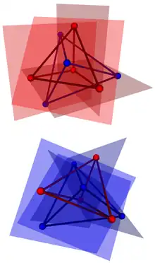 La configuration de Möbius est formée de deux tétraèdres dont chacun est « inscrit » dans l'autre (il n'en existe pas d'équivalent pour les triangles) : on peut construire deux tétraèdres dits tétraèdres de Möbius tels que les sommets de chacun d'entre eux appartiennent aux plans (respectifs) des faces opposées de l'autre. La figure jointe en montre un exemple.
