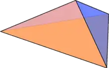 Il existe par ailleurs une relation entre les angles dièdres liée au déterminant de Cayley-Menger[11] :