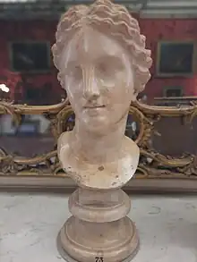 Elle représente une jeune femme au visage d'un ovale arrondi, proportionnellement plutôt petit par rapport au volume du cou. Les cheveux ondulés, séparés par une raie médiane, dessinent un front en triangle et partent vers les tempes où ils sont retenus par le double tour d'un bandeau, sont noués en chignon à l'arrière de la tête puis retombent sur la nuque, suivant la coiffure traditionnelle des Aphrodites du milieu du IVe siècle av. J.-C.[2] Contrastant avec le traitement vigoureux de la chevelure, le visage frappe par ses surfaces lisses et par le sfumato des traits. Le front est bombé, avec deux renflements au niveau des tempes qui mettent en valeur les arcades sourcillières. Les yeux sont petits et faiblement enfoncés, d'où un regard dans le vague caractéristique des statues du second classicisme[3]. Les joues apparemment lisses sont en réalité parcourues de modulations qui créent des effets de lumière. La bouche est petite et esquisse un léger sourire.