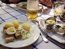 Tête de veau traditionnelle, spécialité servie au marché de Louhans en Bresse. | |